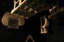 Une caméro video, une rotoptique, vidéoprojecteur, Meubles en carton: Fauteuil H: 56 cm p: 50 cm L: 80 cm, Table H: